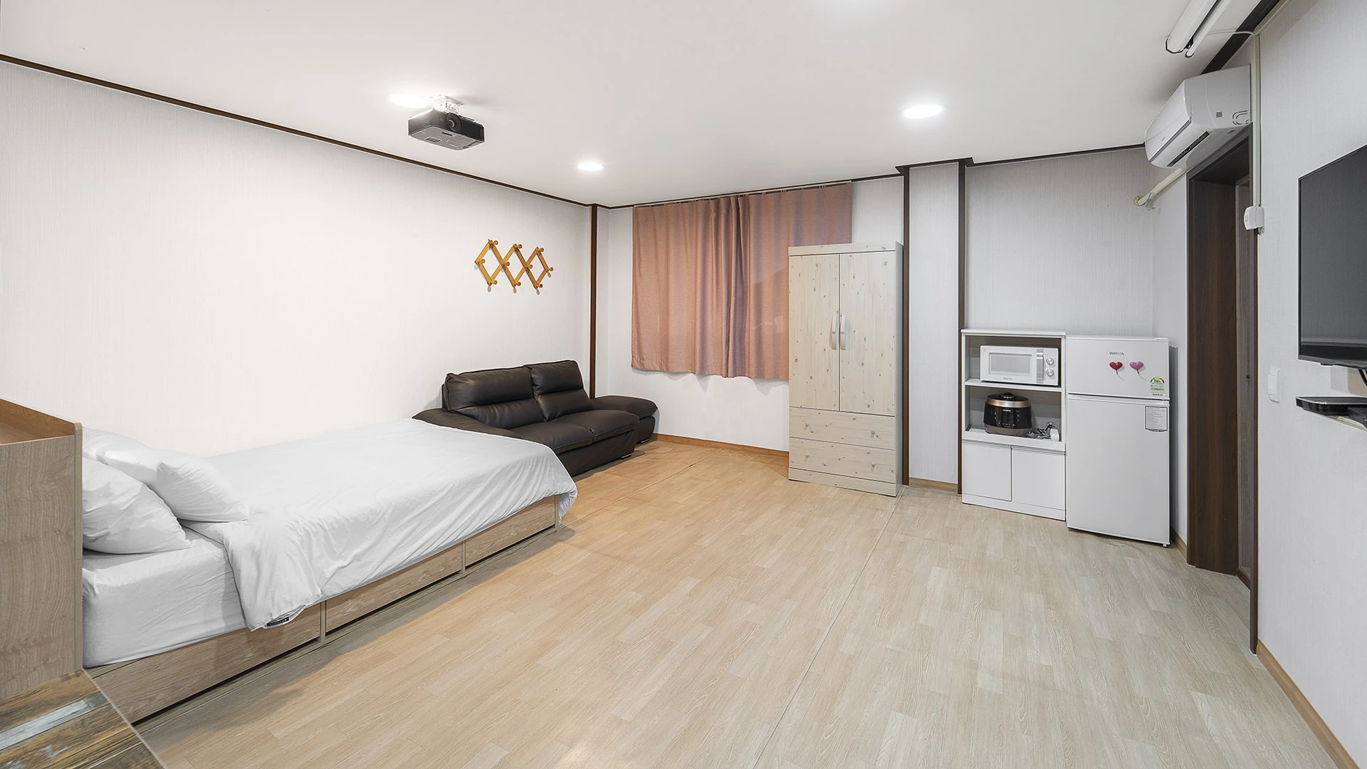 - 집기품목 : TV, 에어컨, 냉장고, 취사시설/도구, 인덕션, 전자레인지, 전기밥솥, 커피포트, 드라이기, 샴푸, 바디워시, 타월, 와이파이, 금연, 침대방, 빔프로젝트, OTT, VOD, 욕실용품, 남녀공용, 단체